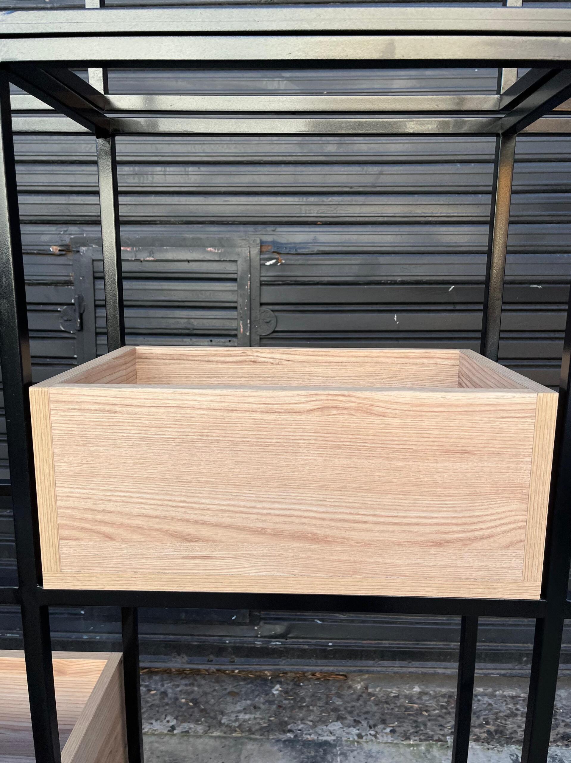 Esta estructura de madera tipo macetita mide 20cm de alto x 30cm de profundidad x 50cm de ancho y está diseñada para adaptarse a diversos usos decorativos y funcionales. Ideal para complementar y organizar tu espacio, esta estructura es especialmente útil como accesorio para nuestro mueble divisor de ambientes.