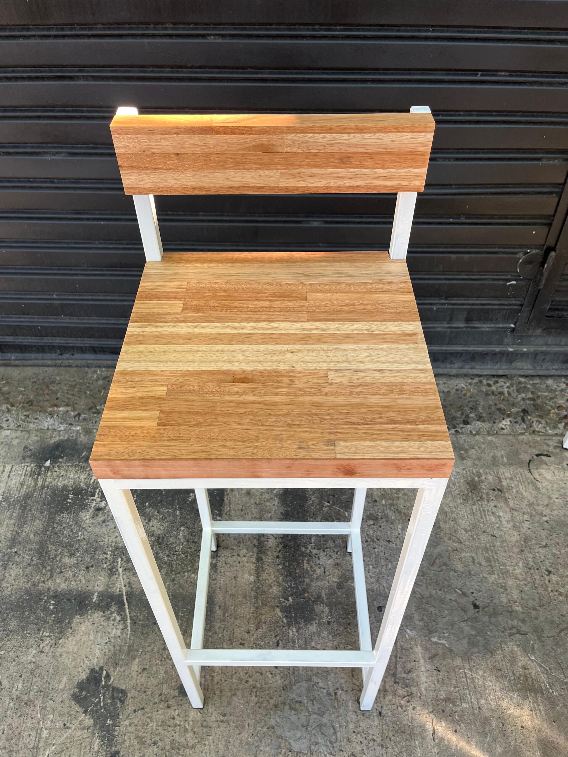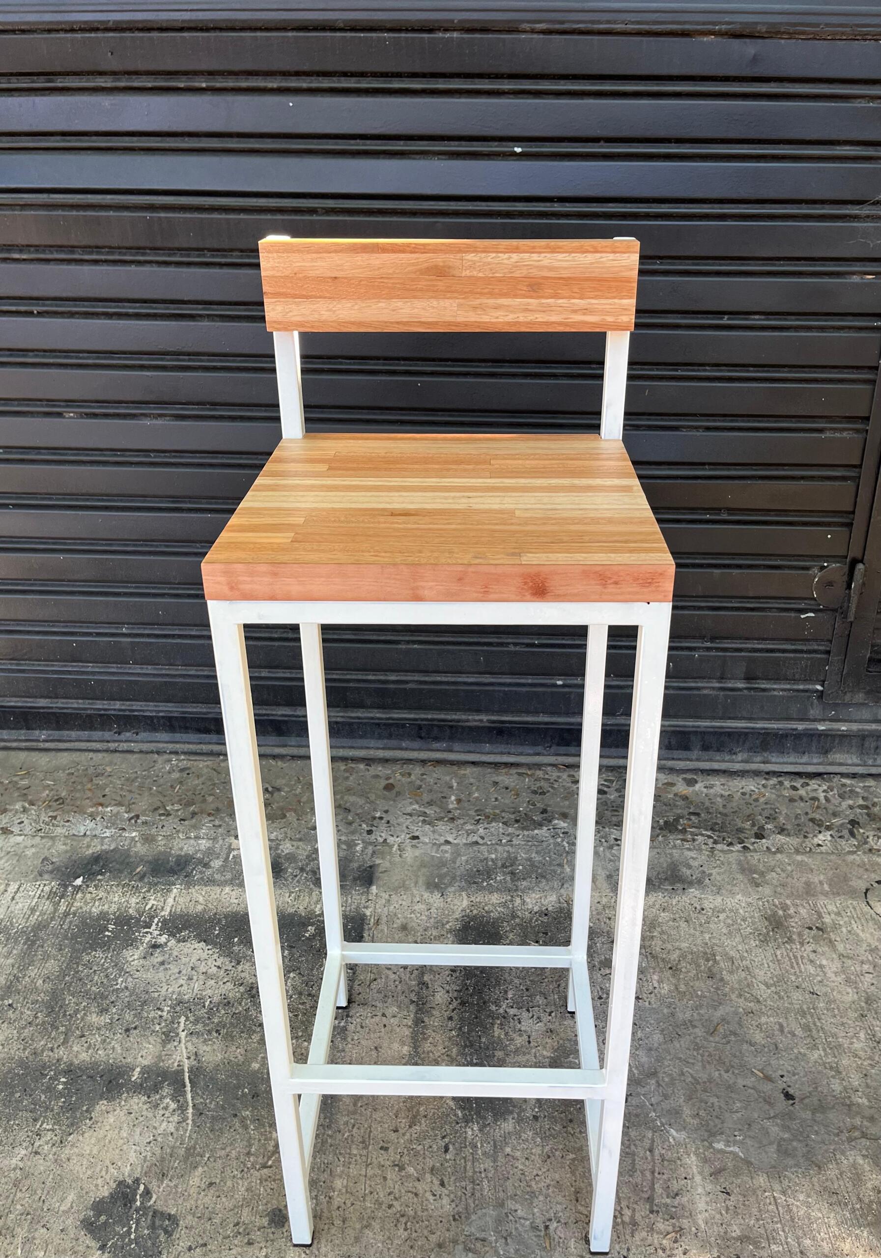 Banqueta estilo industrial premium c/ respaldo eucalipto macizo laqueado