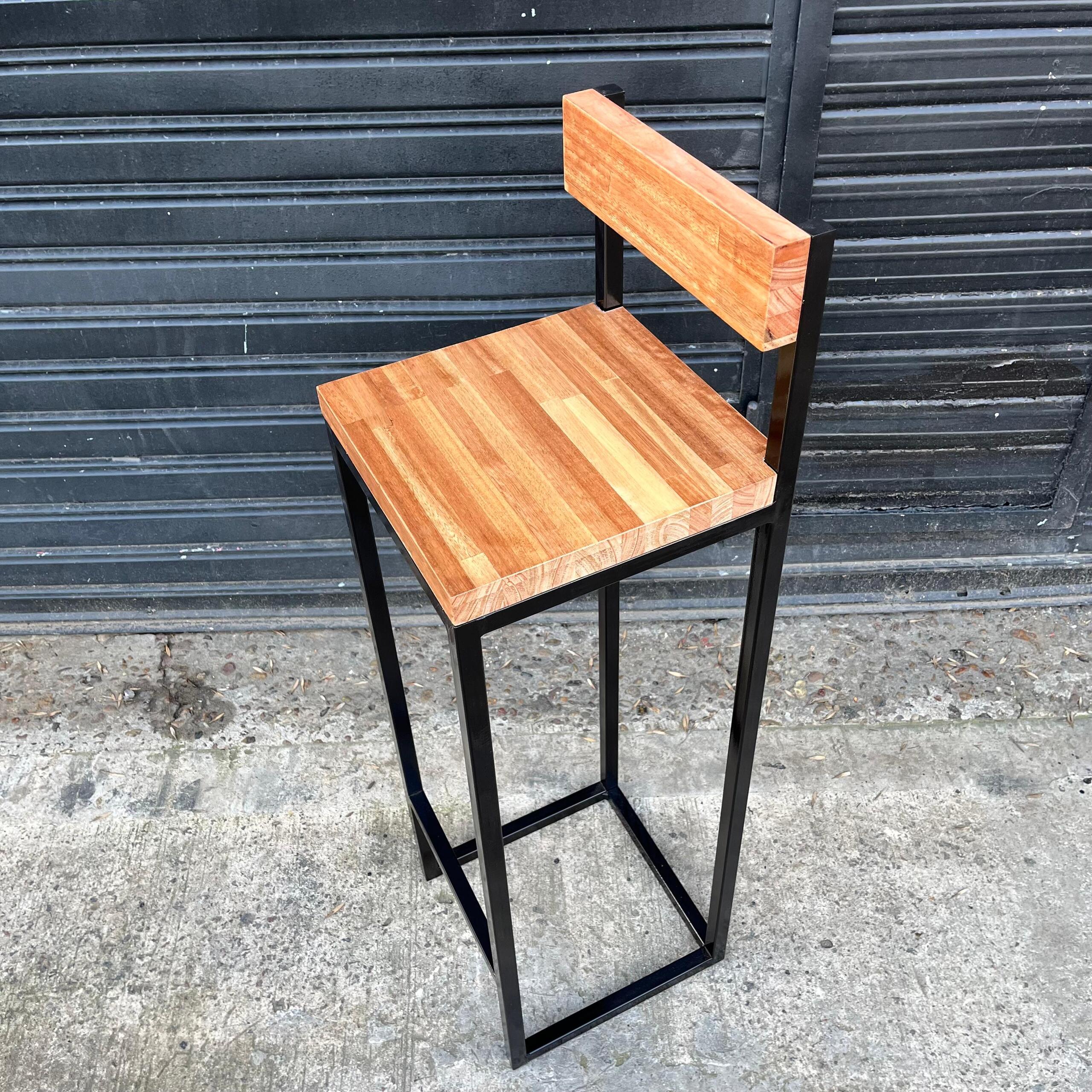 Esta banqueta estilo industrial con respaldo es perfecta para aportar un toque moderno y robusto a tu espacio. Las dimensiones de la banqueta son 35 cm de ancho, 35 cm de profundidad y 80 cm de alto, ideales para acompañar barras o mesas altas. Además, se puede fabricar a medida para adaptarse a tus necesidades específicas.