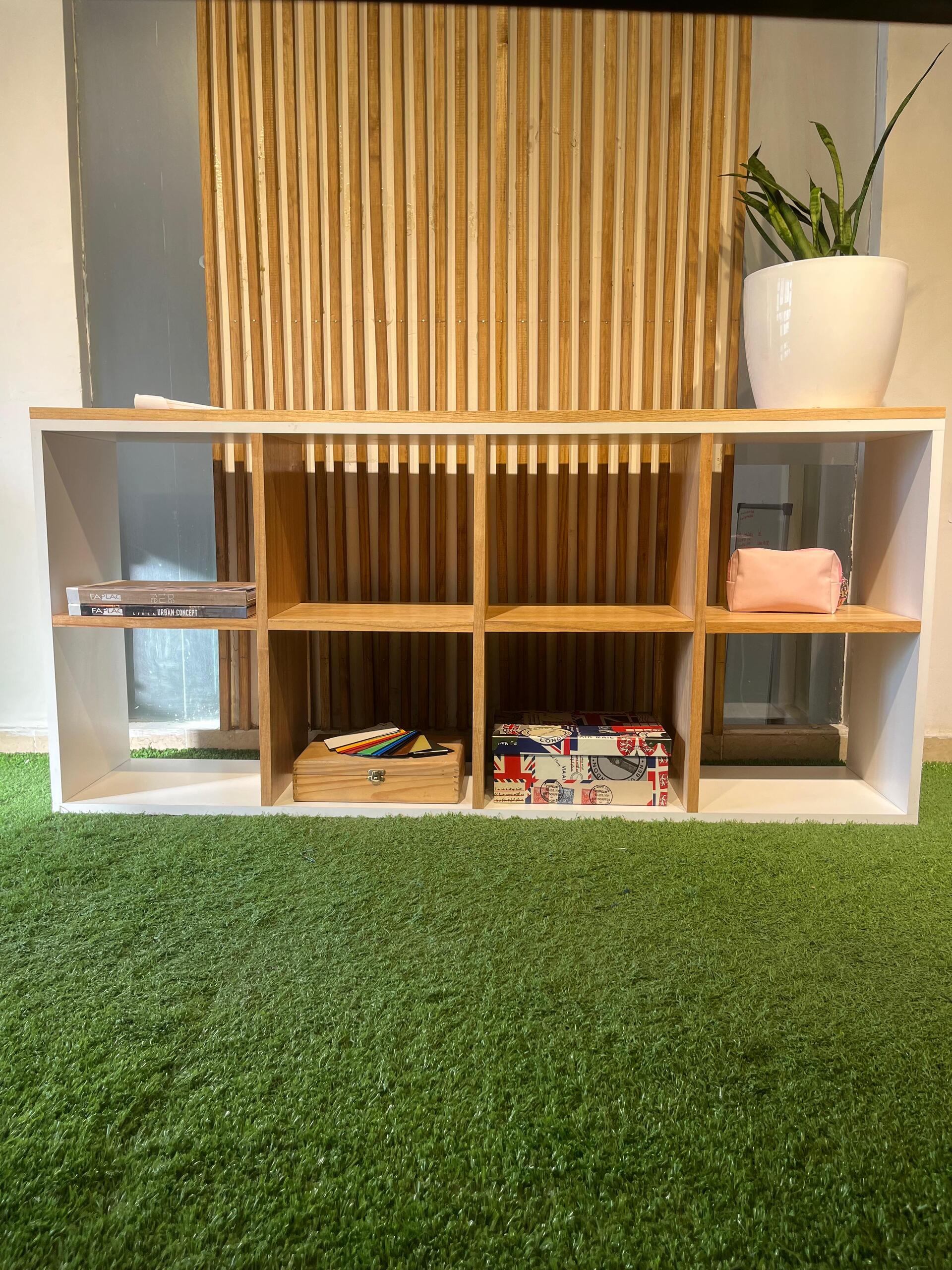 Con 8 espacios de almacenamiento de 30x30 cm aproximadamente, este mueble se adapta a diferentes necesidades. Los compartimentos permiten organizar tus pertenencias de manera eficiente, manteniendo el orden y la accesibilidad en cualquier habitación.